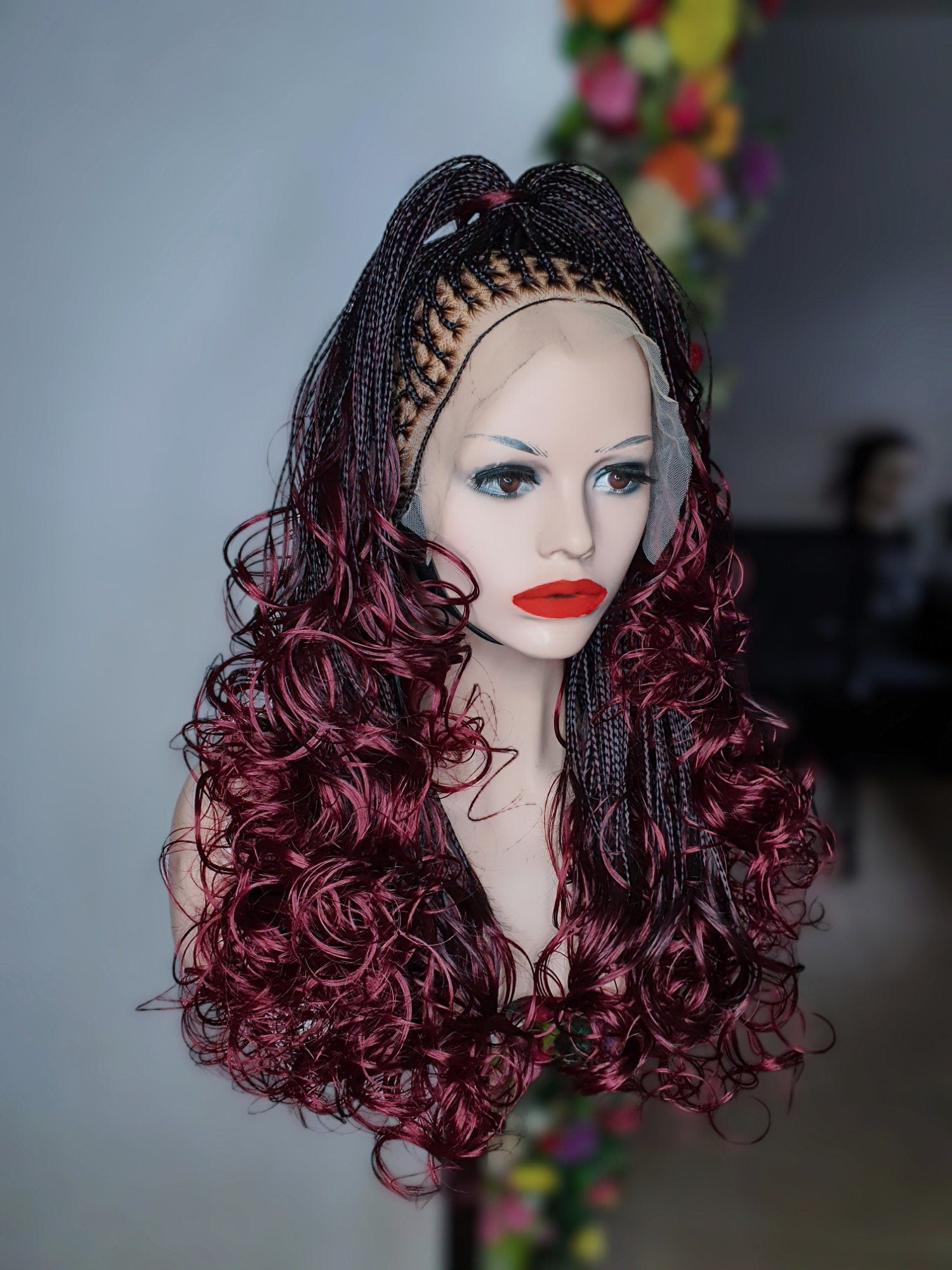 ✨Color of wig on display: Color 2 and burgundy ombre